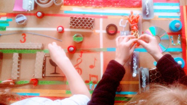 Atelier création d’une œuvre collective, autour de la musicalité des objets et matériaux de récupération.