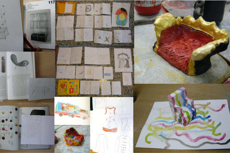 Les enfants sont guidés pour concevoir et inventer un objet de design, depuis la recherche d’idées dessinées sur un petit carnet jusqu’à sa fabrication en argile ou avec d’autres matières.