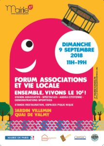 Ce dimanche 9 septembre, venez rencontrer l’équipe de l’atelier des Arts à l’occasion du Forum des associations du 10ème arrondissement de Paris!